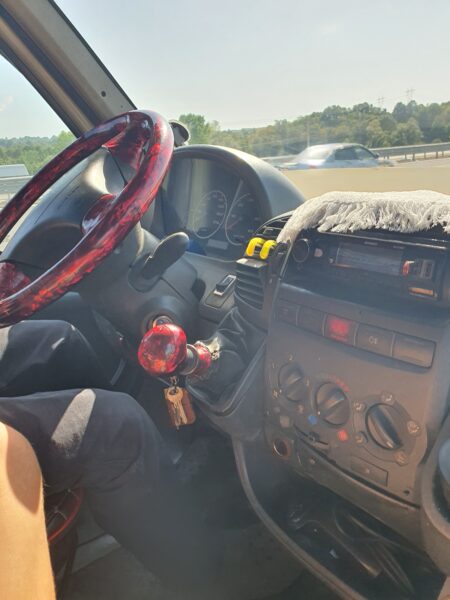 Siamo partiti e sosta all’autogrill a prendere da bere e… controllare il motore del carro attrezzi!
