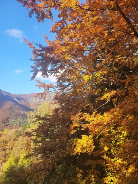Adesso l’Appennino regala colori mozzafiato, soprattutto in una giornata soleggiata come oggi. Sosta ristoratrice al Rifugio Cavone, con ottima polenta con taleggio, salsiccia e funghi.