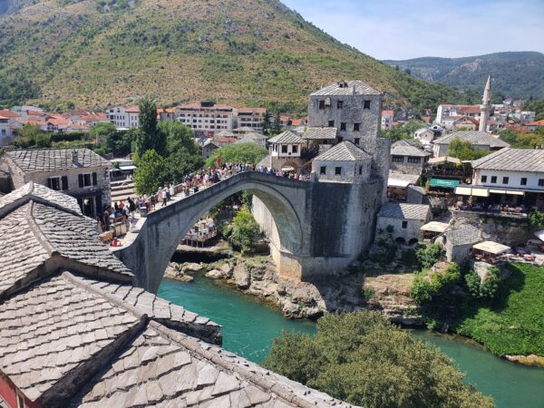 Poi siamo arrivati a Mostar, molto calda e per me piena di ricordi perchè all’inizio del duemila passai una settimana in un centro di sviluppo d’impresa a tenere un corso su futuri piccoli imprenditori. Si trattava di persone che fino a pochi anni prima si erano sparate addosso, nella migliore delle ipotesi. Fu comunque una bella e toccante esperienza. Il ponte era ancora rovinato dai bombardamenti e sull’alta montagna che sovrasta la città c’era ancora la grande croce che, per ingiuria, calava la sua ombra sul quartiere musulmano. Adesso è tutto molto più affollato e turistico, ma sempre emozionante.